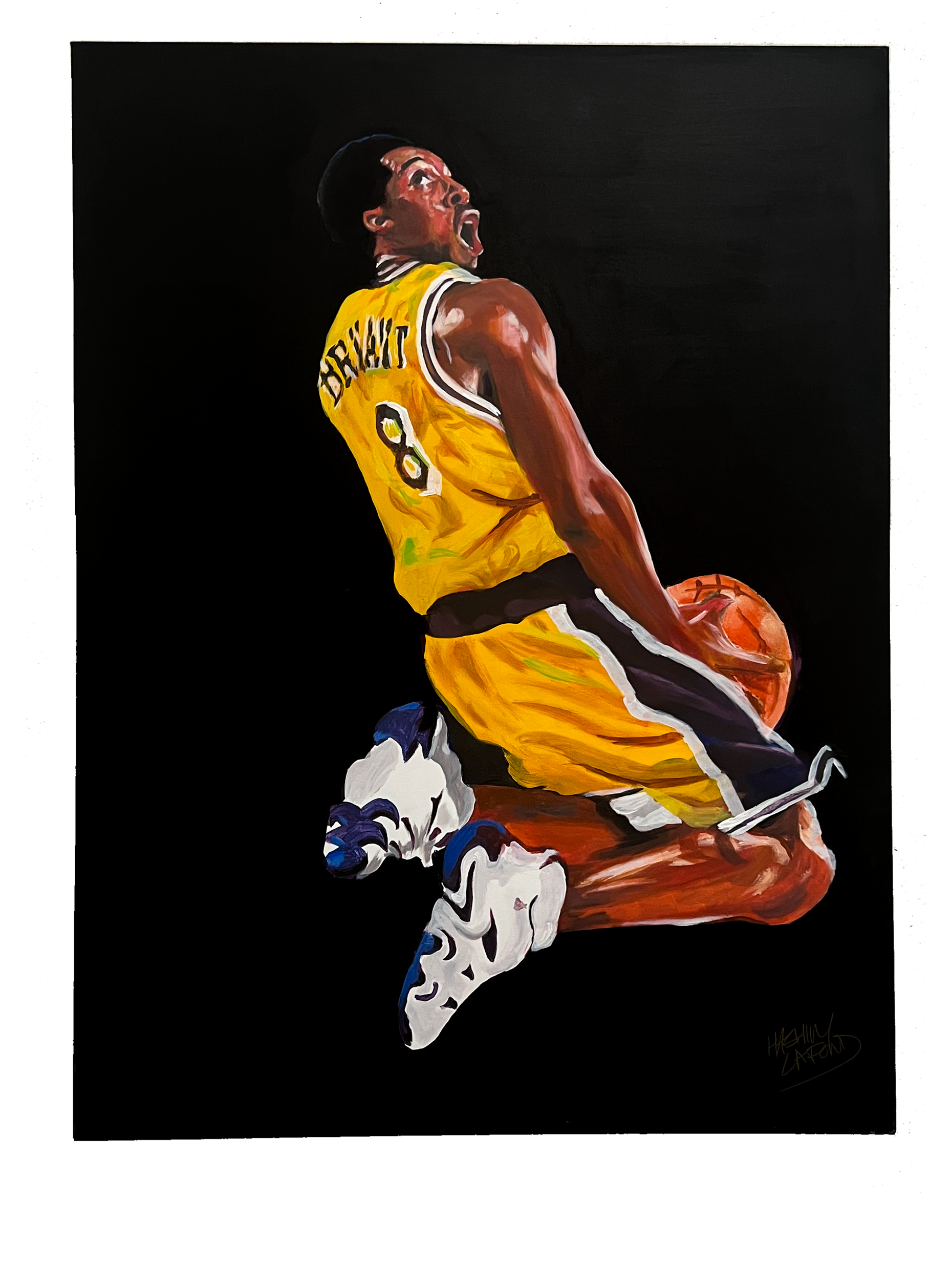 Indulge in the exquisite splendor of “Frobe,” a seminal piece by the visionary artist Hashim Lafond. This work is more than mere paint on canvas; it is a compelling narrative encapsulating the spirited legacy and relentless passion synonymous with the iconic Kobe Bryant. Lafond, with his masterful strokes, ushers you into a realm where fervor meets fortitude, epitomized by the allegorical presence of the purple and gold hues, weaving the rich tapestry of honor, resilience, and the ceaseless pursuit of greatness that marked Bryant's illustrious career.